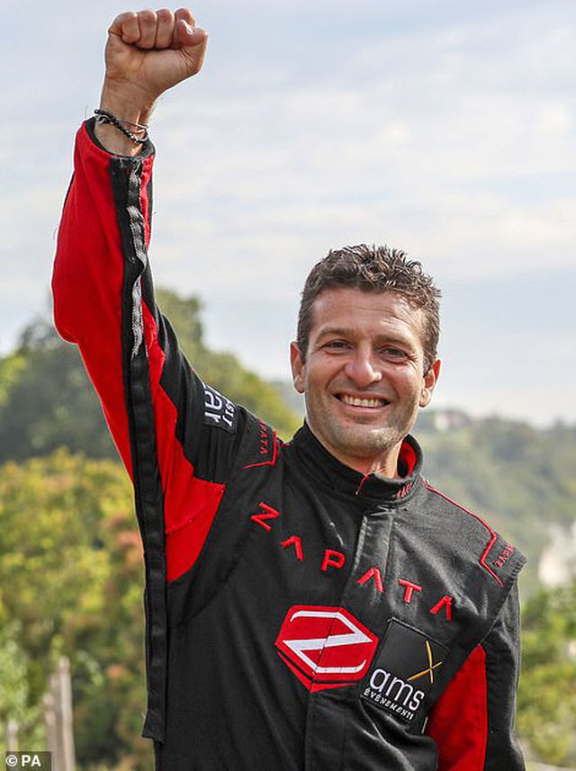 Trước đó, Zapata từng gặp thất bại trong hành trình vượt qua eo biển Anh hôm 25/7. Anh bị mất thăng bằng và rơi xuống biển khi còn cách điểm đến 17 km trong hành trình dài khoảng 35 km. (Ảnh: Dailymail)
