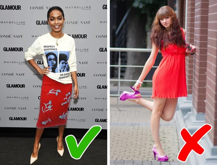 Bạn không cần phải chạy theo các xu hướng thời trang, quan trọng nhất là tìm được những trang phục khắc phục được những khiếm khuyết và tôn lên những ưu điểm của cơ thể. Ví dụ nếu bạn nhỏ, không nên mặc quần áo maxi quá khổ. Nếu bụng hơi to, bạn có thể mặc váy xòe che bớt bụng.