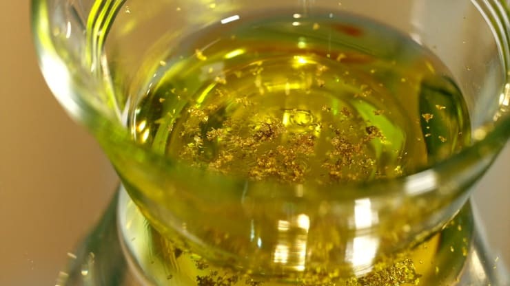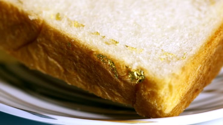 Sau khi được phết bơ lên, bánh mì được quét một lớp gồm hỗn hợp dầu nấm truffle trắng và vảy vàng, giúp làm tăng thêm độ giòn và giúp chiếc bánh thêm lấp lánh, Calderone nói.