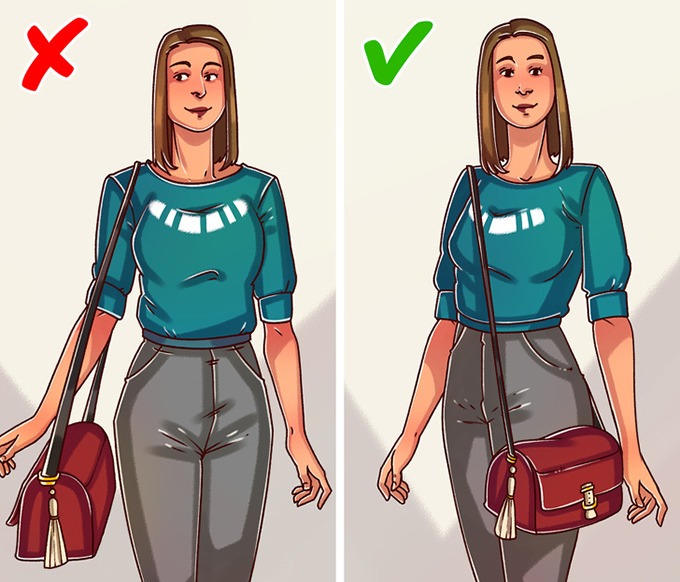 Với túi quai dài, bạn nên đeo chéo