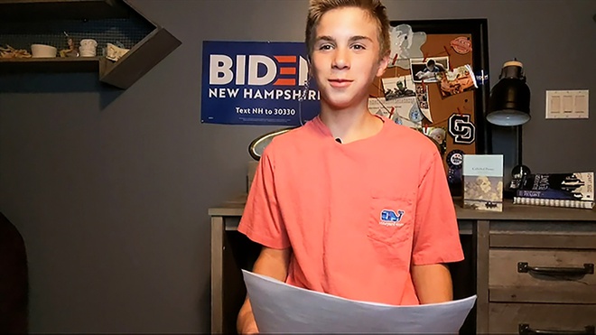 Bé Brayden Harrington, 13 tuổi. Ảnh: Đại hội Toàn quốc đảng Dân chủ.