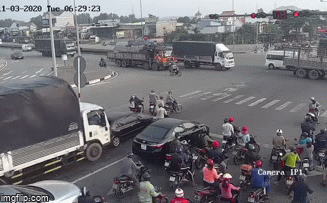 Old  vnchcir Khoảnh khắc xe container húc văng xe và người chờ đèn đỏ khiến nhiều người thương vong