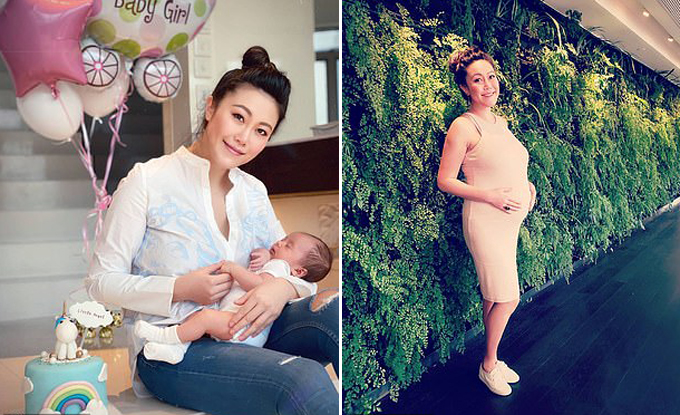 La Lực Lực khi mang thai (trái) và sau khi hạ sinh con gái. Ảnh: Instagram.