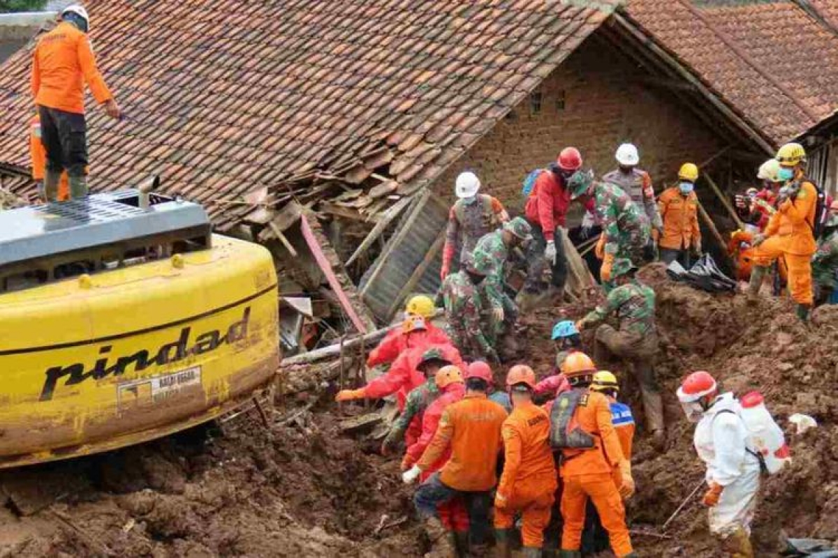 Tìm kiếm nạn nhân trong vụ sạt lở đất ở Sumedang (Ảnh: Kompas.com)