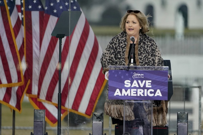 Bà Amy Kremer, Chủ tịch Women for America First, phát biểu tại cuộc biểu tình ngày 6/1 ở Washington, D.C. Ảnh: AP.