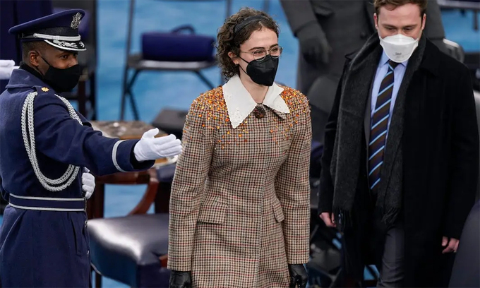 Ella Emhoff (chính giữa) trong lễ nhậm chức của Tổng thống Joe Biden ngày 20/1. Ảnh: LA Times.
