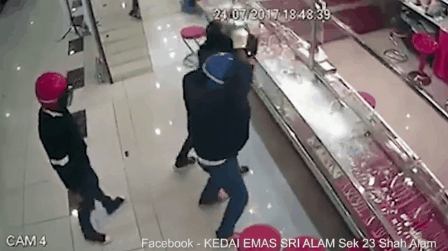 Theo tờ World of Buzz, vụ việc hài hước này xảy ra vào khoảng 18h48 ngày 24/7/2017 tại cửa hàng trang sức Kedai Emas Sri Alam ở thành phố Shah Alam, bang Selangor, Malaysia.