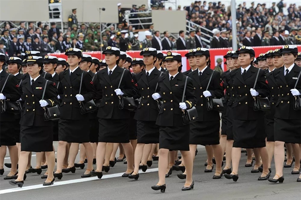 Nữ quân nhân trong một cuộc duyệt binh của lực lượng Phòng vệ Nhật Bản.