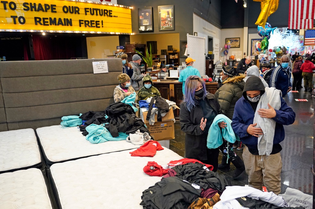 Để giúp người vô gia cư và tránh xảy ra các trường hợp tử vong không đáng có vì mất điện, một số cửa hàng, địa điểm công cộng được sắp xếp để trở thành nơi trú ẩn. Ảnh: AP.