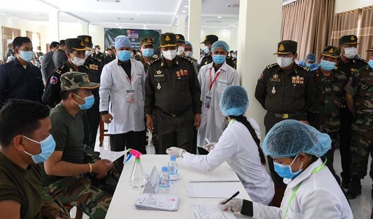 Quân đội Campuchia tham gia kiểm soát dịch bệnh đang bùng phát ở nhiều tỉnh thành trong nước (ảnh: Khmer Times)