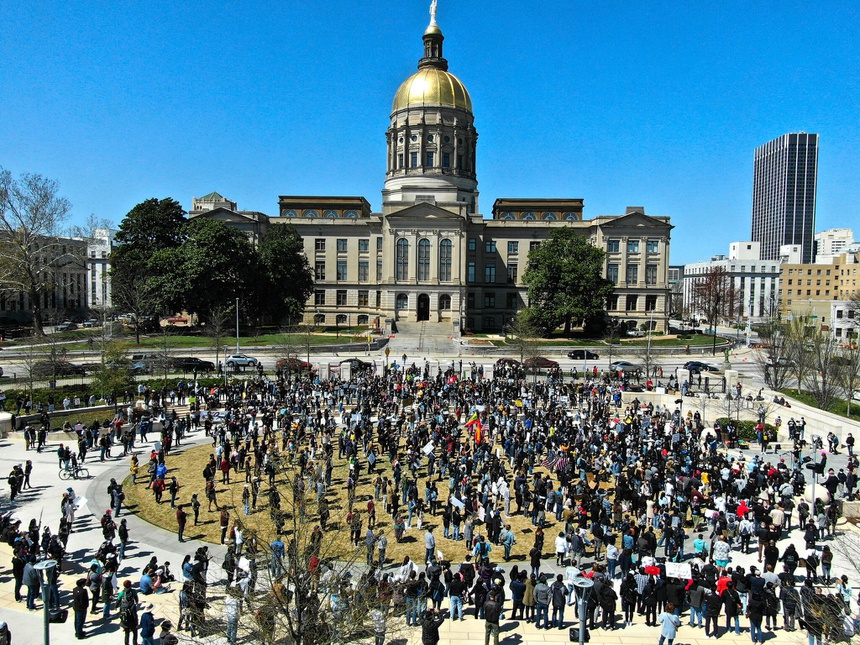 Cuộc biểu tình phản đối bạo lực nhắm vào người gốc Á diễn ra ở Atlanta hồi tháng 3. Ảnh: New York Times.