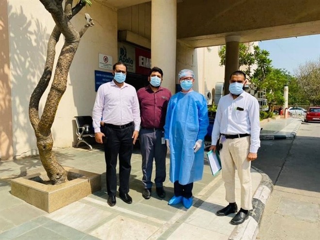 Phải đích thân "xuất Đại sứ" để đảm bảo có được giường bệnh ở bệnh viện Apollo ở Delhi cho một kỹ sư Việt Nam đang xây trụ sở cho Đại sứ quán đang trong tình trạng nguy kịch. Ảnh chụp Đại sứ Phạm Sanh Châu và lực lượng chức năng Ấn Độ tại Apollo Hospitals Delhi. (Ảnh do Đại sứ cung cấp)