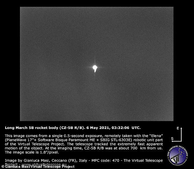 Các nhà thiên văn học có trụ sở tại Ý đã chụp được hình ảnh đầu tiên về lõi tên lửa Trường Chinh 5B của Trung Quốc đang di chuyển mất kiểm soát trên quỹ đạo.