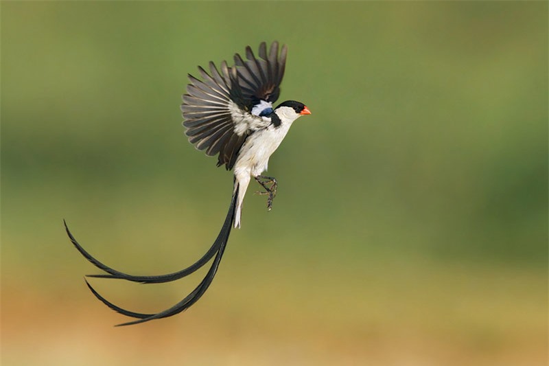 Đuôi của chim trống Vidua Macroura thường rất dài và đẹp.