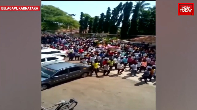 Trước đó, một video được đăng trên mạng xã hội của hãng tin ANI cho thấy cảnh hàng trăm người sánh vai đi dưới đường để tham dự tang lễ của một con ngựa tại vùng Maradimath, quận Belagavi. Nhiều người không đeo khẩu trang.