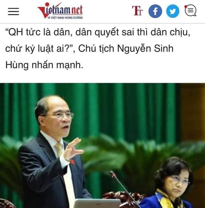 Trước đó, ông Hải giải thích, bầu cử là việc hệ trọng nên không biết thì không nên bầu. Ông Hải dẫn chứng, vào năm 2014, ông Nguyễn Sinh Hùng, lúc này là Chủ tịch Quốc hội Cộng sản đã tuyên bố trên báo chí rằng, Quốc hội tức là dân, dân quyết sai thì dân chịu, chứ kỷ luật ai? Đây là cách mà ông Hùng với cương vị đứng đầu Quốc hội đã dùng để thổi bay những sai phạm của Quốc hội Cộng sản.
