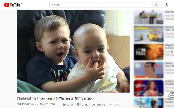 Gia đình sở hữu clip nổi tiếng “Charlie Bit My Finger” đã thực hiện bán đấu giá clip này dưới định dạng NFT (non-fungible token) với giá cuối cùng được chốt là 760.000 USD. NFT là định dạng tác phẩm số không thể bị chia nhỏ nổi lên trong cơn sốt tiền ảo vào hồi đầu năm nay.