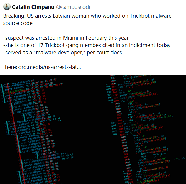 The indictment accuses Witte of participating in a scheme to steal millions of dollars from entities across the world by infecting computers with malware that captured personal information — such as credit card numbers and passwords — and gave TrickBot members access to the victims’ networks.