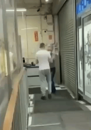 Hai bên đã đá nhau vài cái, tuy nhiên, có lẽ mục đích chính của những người đàn ông gốc Á chỉ là tống khứ thanh niên khó ưa này ra khỏi cửa hàng của mình mà thôi.