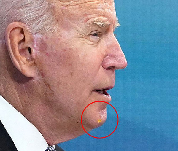 Chấm màu vàng trên cằm ông Biden ở cuộc họp trực tuyến hôm 30/8. Ảnh: AFP.