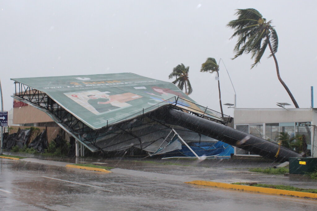 Một bảng quảng cáo bị đổ trên một tòa nhà ở thị trấn Manzanillo ở bờ biển Thái Bình Dương, Mexico. Ảnh: nytimes