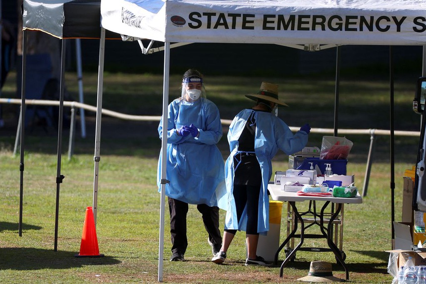 New South Wales, bang chịu phong tỏa nghiêm ngặt trong gần 3 tháng, phát hiện thêm 1.599 ca nhiễm mới. Ở khu vực lân cận, giới chức bang Victoria báo cáo thêm 450 người mắc Covid-19.