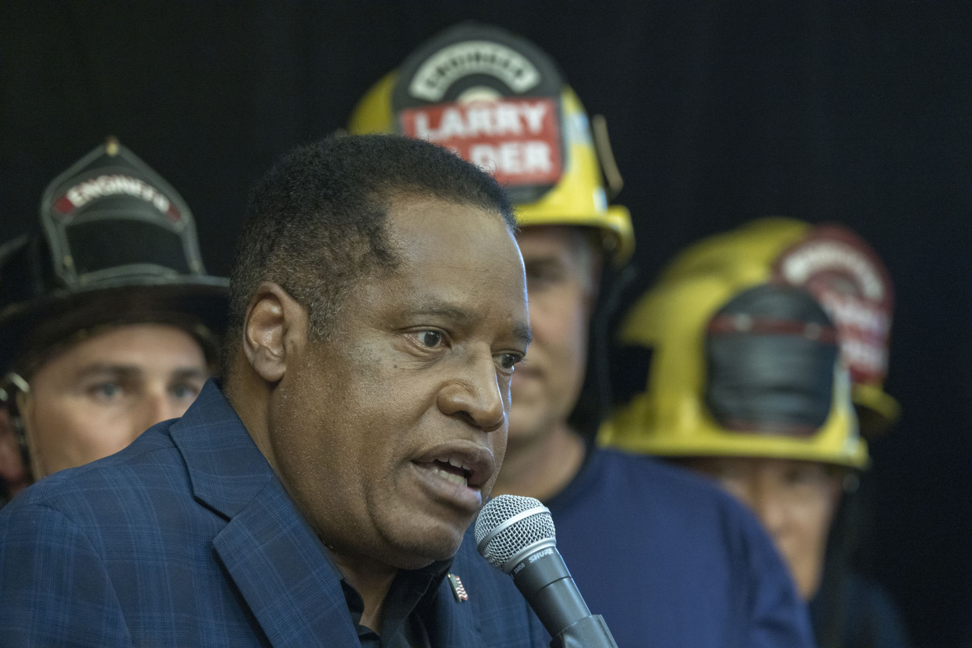 Ứng cử viên Larry Elder (Cộng Hòa) vận động tại Los Angeles, California, ngày 8 Tháng Chín. (Hình: Robyn Beck/AFP via Getty Images)