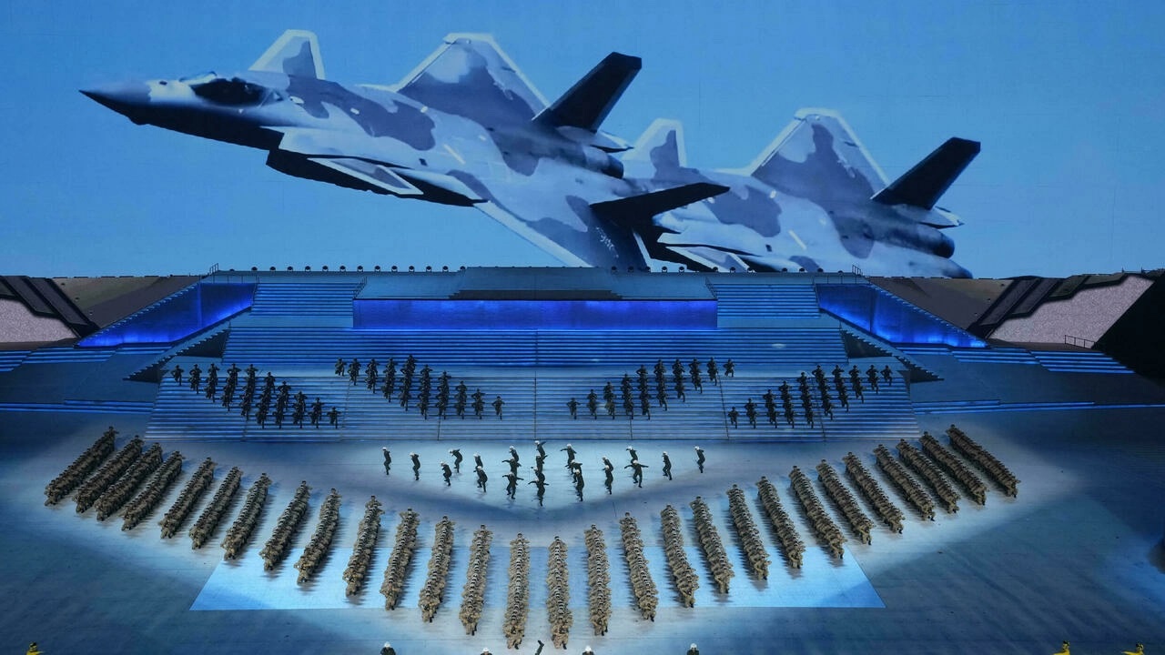 Một màn trình diễn tại Bắc Kinh nhân kỷ niệm 100 năm thành lập đảng Cộng Sản nhằm phô trương sức mạnh Trung Quốc. Ảnh tư liệu chụp ngày 28/06/2021. AP - Ng Han Guan