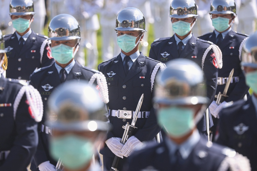Vệ binh danh dự Đài Loan trong một cuộc diễu binh hôm 5/10. Ảnh: Reuters.
