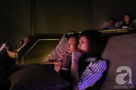 Đôi nam nữ đang xem phim tình cảm, đến đoạn gay cấn chàng trai quay ra nhìn cố gái :