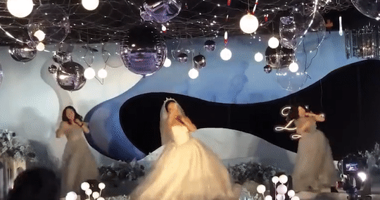 Đoạn video đăng tải trên mạng xã hội cho thấy, cô dâu đứng ở giữa trong chiếc váy cưới lộng lẫy, 2 phù dâu mặc váy xám đứng ở hai bên trên sân khấu đám cưới, cô dâu cùng 2 phù dâu cùng nhau thể hiện màn đấm boxing trong điệu nhạc.