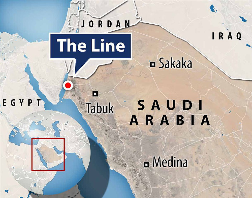Dự án Neom trị giá 500 tỷ đô la Mỹ sẽ được xây dựng từ đầu dọc theo bờ Biển Đỏ của vương quốc và sẽ trải dài 169 km với The Line là 'cột sống' của thành thố. Neom sẽ rộng 10.000 dặm vuông thuộc tỉnh Tabuk, một khu vực gần biên giới với Jordan và Ai Cập.