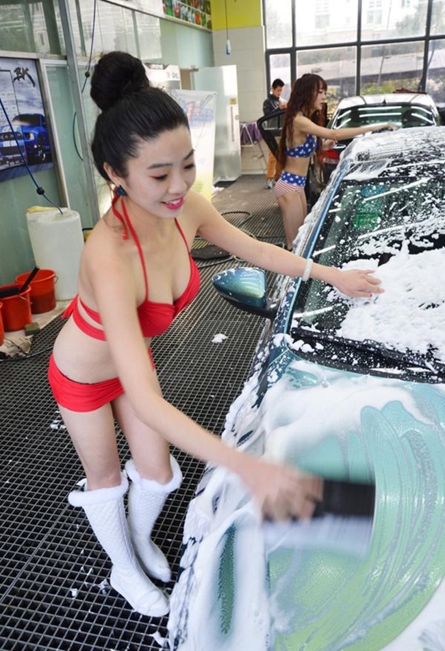 Ở Trung Quốc từng nở rộ dịch vụ thuê người mẫu ăn mặc gợi cảm rửa xe để thu hút khách qua lại.