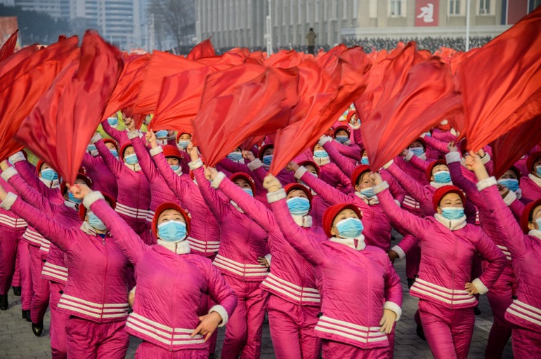 Theo Dailymail, hàng nghìn người Triều Tiên đeo khẩu trang và mang theo băng rôn hôm 5/1 đã tập trung ở quảng trường Kim Nhật Thành, thủ đô Bình Nhưỡng thể hiện tinh thần đoàn kết và ủng hộ đường lối của nhà nước và lãnh đạo Kim Jong-un.