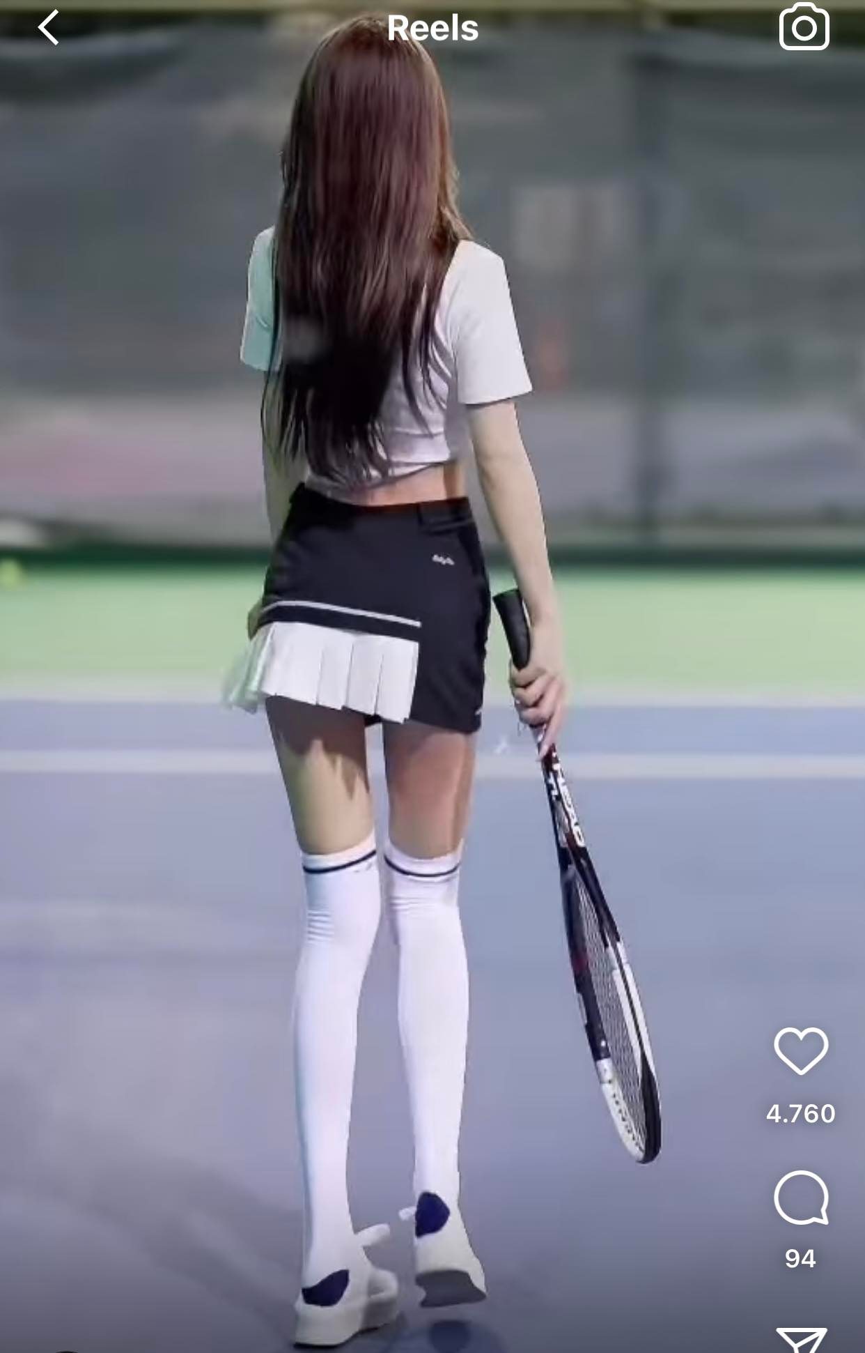 Mới đây, một người đẹp thu hút ánh nhìn trên sân tennis khi diện áo croptop kết hợp chân váy mini có điểm nhấn là chi tiết xếp ly, để lộ đôi chân dài miên man. Cô nàng được khen tinh tế khi diện váy có lớp quần bảo hộ ở bên trong, để tránh tối đa hớ hênh khi di chuyển, vận động. Ngoài sự, sự kết hợp hài hòa giữa hai tông màu trắng, xanh cũng là một điểm cộng trong outfit này.