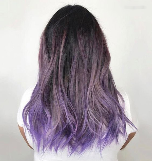 Còn đây là một kiểu tóc ombre màu tím sành điệu.