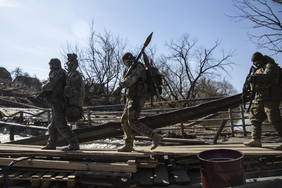 Theo Washington Post, ẩn mình trong các khu rừng ở rìa tây bắc của Kiev, các khẩu đội pháo binh của Ukraine đã tổ chức các cuộc tấn công vào các vị trí của lực lượng Nga bên trong thị trấn Irpin và Bucha (ngoại ô Kiev) trong nỗ lực làm tiêu hao lực lượng đang ra sức tiến về Kiev. Cây cầu nối Kiev với Irpin cũng đã bị quân đội Ukraine phá bỏ từ lâu để ngăn các phương tiện bọc thép của Nga băng qua.
