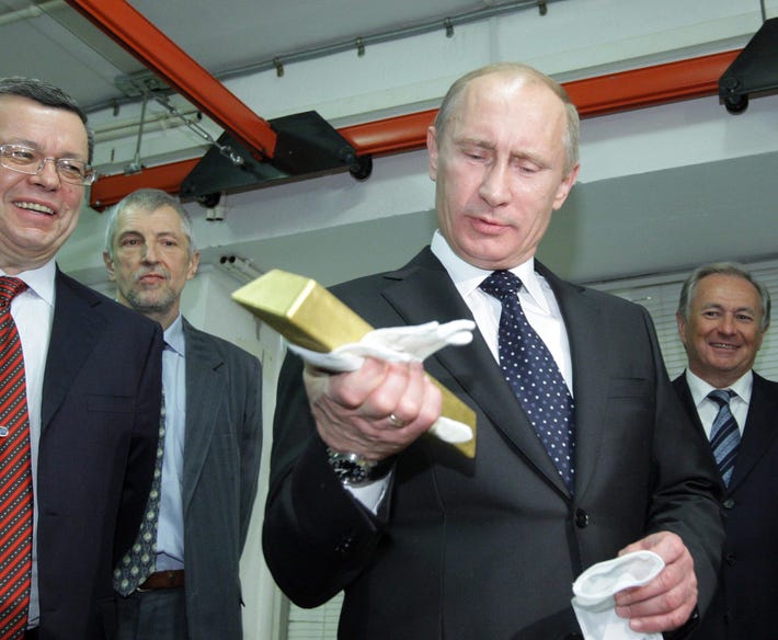 Theo tờ Forbes, Nga ngày càng thay thế giao dịch USD bằng vàng. Dự trữ vàng của Nga từ mức thấp kỷ lục trị giá 2 tỷ USD vào năm 1995, hiện đã lên tới 130 tỷ USD, chiếm 20% tổng dự trữ. Trên thế giới chỉ có Mỹ, Đức và Italy dự trữ nhiều vàng hơn.