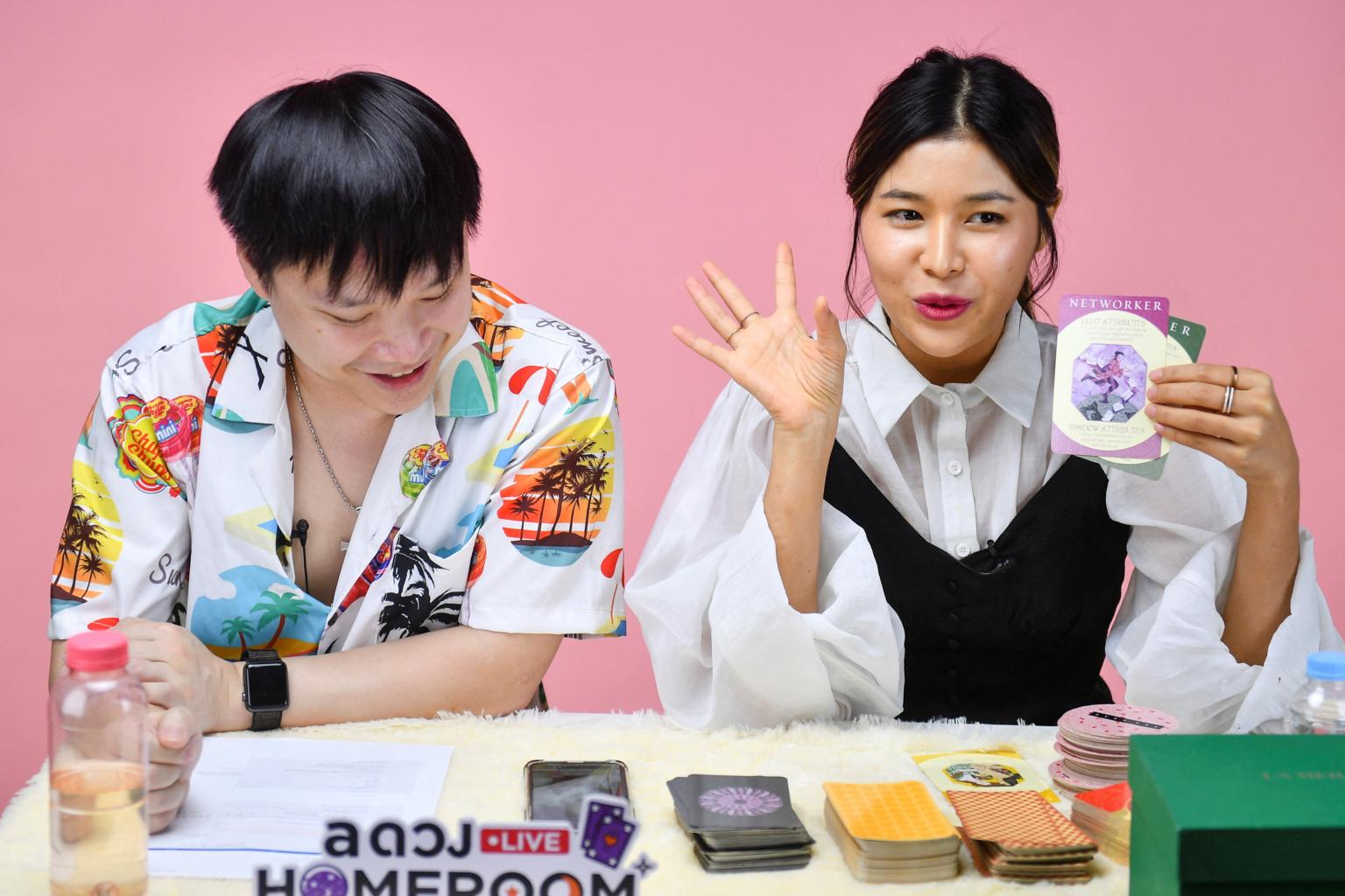 Các thầy bói phát sóng trực tiếp buổi đọc lá bài rên một nền tảng trực tuyến ở Bangkok. Ảnh: Reuters