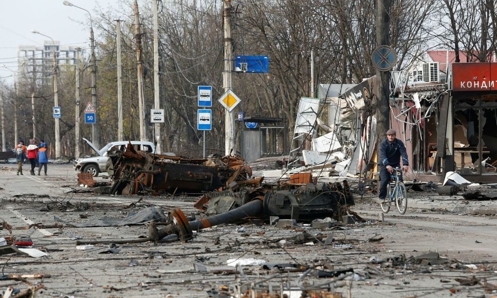 Một tuyến phố tan hoang sau giao tranh ở thành phố Mariupol, Ukraine hôm 17/4. Ảnh: Reuters.