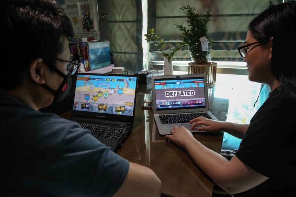 Một nhóm bạn đang chơi game Axie Infinity. Ảnh: AFP