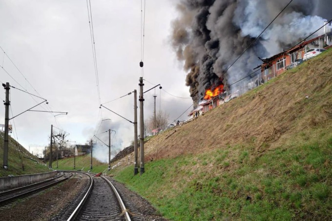 Thiệt hại do pháo kích gần ga xe lửa tại thành phố Lviv, miền tây Ukraine, ngày 18/4. Ảnh: Twitter/Lesia Vasylenko.