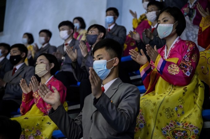 Người dân đeo khẩu trang tại một sự kiện ở Bình Nhưỡng, Triều Tiên, hôm 13/2. Ảnh: AFP.