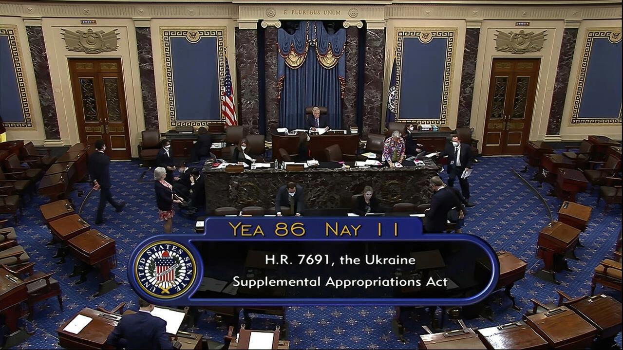 Truyền hình Thượng Viện Mỹ kết quả cuộc bỏ phiếu ngày 19/05/2022 tại Washington (Hoa Kỳ), thông qua gói viện trợ 40 tỷ đôla cho Ukraina. AP