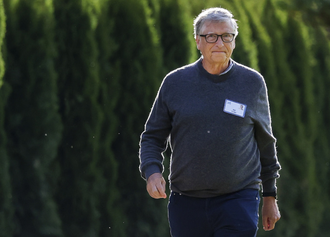 Tỷ phú Bill Gates đi bộ tới phiên họp buổi sáng ở Sun Valley, bang Idaho, Mỹ, ngày 8/7. Ảnh: AFP.