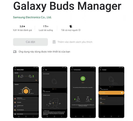 Ứng dụng quản lý tai nghe không dây của Samsung. Ảnh: TIỂU MINH