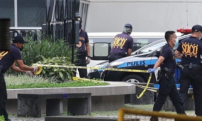 Cảnh sát phong tỏa hiện trường vụ xả súng tại Đại học Ateneo de Manila, Philipines, ngày 24/7. Ảnh: Phil Star.