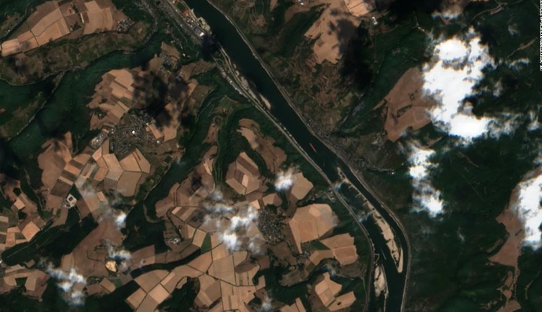 Sông Rhine có nhiều đồng hồ đo khác nhau trên đường đi, trong đó có đồng hồ đo mực nước cả ở Kaub, ngay phía tây Frankfurt, Đức. Nơi đây, mực nước đã xuống thấp tới 32 cm. Các công ty vận tải thường coi mực nước dưới 40cm trên sông Rhine là quá thấp. Tại Kaub, mực nước dưới 75cm thường có nghĩa là tàu container phải giảm tải xuống khoảng 30%. Mực nước thấp cũng có nghĩa là các công ty phải trả phí cao hơn để vượt sông. Tất cả những yếu tố này làm cho việc vận chuyển trở nên đắt đỏ hơn và chi phí thường do người tiêu dùng gánh chịu.