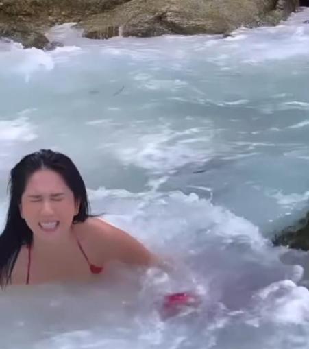 Cách đây ít phút, trên phần Story ở trang Instagram cá nhân, Ngọc Trinh đã đăng tải những khoảnh khắc ghi lại hậu trường trong một buổi chụp ảnh bikini của mình. Tuy nhiên, cô nàng đã vô cùng chật vật để cho ra đời một bức ảnh đẹp. Dễ thấy, trong suốt quá trình chụp ảnh, "Nữ hoàng nội y" đã rất cố gắng để tạo dáng nhưng lại bị sóng đánh liên tục khiến cô phải bất lực. Đứng trước tình cảnh này, Ngọc Trinh cũng than thở: "Quá gian nan khúc này".