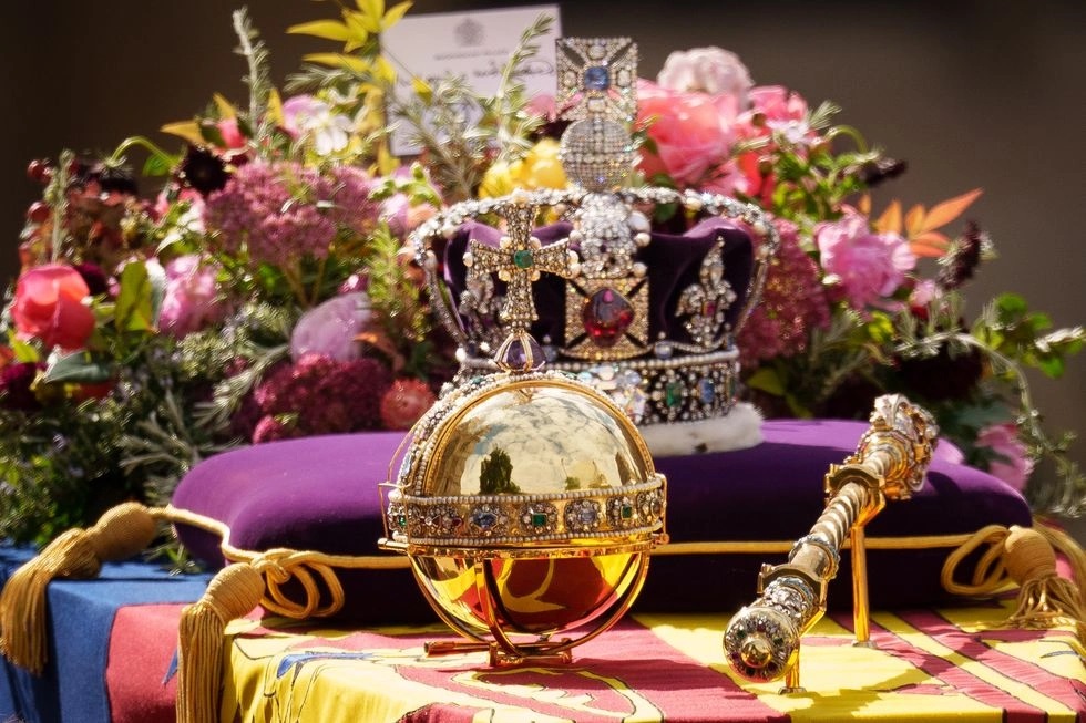 Theo như vào hôm 19/9 trong lễ tang của Nữ hoàng Elizabeth II khi linh cữu nữ hoàng được quàn tại Đại sảnh Westminster, báu vật hoàng gia gồm vương miện, vương trượng và quả cầu hoàng gia luôn được đặt trên quan tài của nữ hoàng Anh.